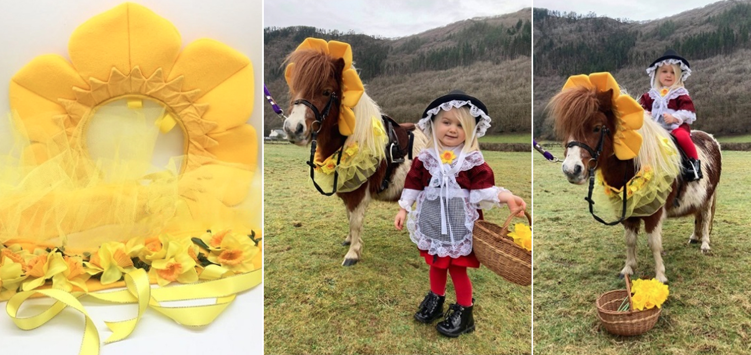 Daffodil hat, Garland/tutu with artificial foliage & daffodil flower heads