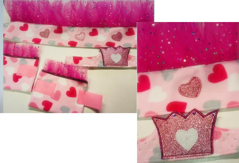 Gorgeous pink hearts outfit with loads of glitter, sparkles & crystals, comprising frilly tutu and crown browband