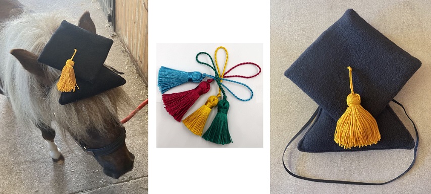 2-piece outfit comprising graduation cap with tassel and printed sash